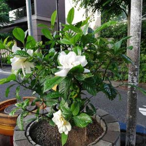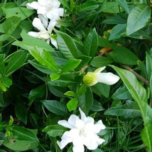 今年はスズメガの被害が少なく、沢山花をつけてくれました。#ヤエクチナシ #グミ、ギルトエッジ