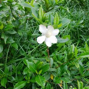 散歩道は、梅雨時の様相をはっきりと、その道際には、それを自分に呼び込むかの様にして、草花達は生きいきとした表情を見せ、自らの光彩を放っている--- その香りを、梅雨空の下に、真っ白な花。クチナシはヤエクチナシだろうか。その木の下を、散歩でまた用事で急ぎ通る者にも、アジサイ同様に、この季節の持つ湿気空間を癒してくれている。 ・ヤエクチナシ<八重梔子>(アカネ科) クチナシは樹高30㎝程度の矮性品種から大型の八重咲き品種までバラエティに富んでいる(クチナシ、ヤエクチナシ、オオヤエクチナシ、コクチナシ(ヒメクチナシ)) 花には強い芳香があり、花期になると庭を甘い香りで包む。 ジンチョウゲ、キンモクセイと並ぶ三香木の一つとされている。 (出典・参考 ガーデニング図鑑 より) ---和名クチナシの語源の諸説 ・果実が熟しても裂開しないため、口がない実の意味から「口無し」という説。 ・上部に残る萼を口(クチ)、細かい種子のある果実を梨(ナシ)とし、クチのある梨の意味であるとする説。 ・クチナワナシ(クチナワ=ヘビ、ナシ=果実のなる木)。ヘビくらいしか食べない果実をつける木という意味からクチナシに変化したという説。 (出典・参考 クチナシ Wikipedia より)