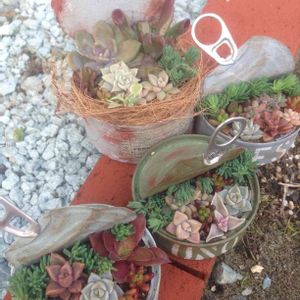 次のイベント用にちょっとづつ寄植え準備中(^O^)/ にしても暑いっ(;´Д`A 6/8 10時〜15時 薬師堂手作り市