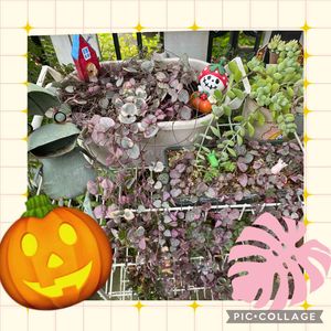 こんにちは😊 昨夜はたっぷり雨が降ったので🍀さんたちは喜んでいるかも💕 🏷️ネックレスの日に参加します♾️ 暑い夏におとなしく日陰にいたので元気な子たち🩷 影になっていたからなのかすっかり白い色が目立つ子もチラホラいる💕 おつむ辺りがハゲ散らかしてきたので、アートネイチャーじゃぁなくアートカズラに今から増殖しよ〜っと まだ9月なのに世間はハロウィンの装飾🎃 私も一足早くいちごちゃんにもらった🍓ハロウィンちゃんをちょこっとお座り中🩷