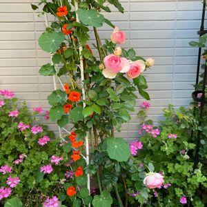 こんにちは バラ🌹ピエールドゥロンサール バラ🌹ディズニーランドローズ ニオイゼラニウム ナスタチウム 咲き出してきました