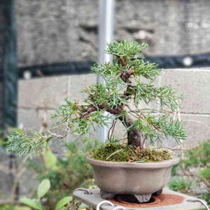 真柏(糸魚川真柏) 樹高・・・12cmくらい 樹幅・・・18cmくらい 幹(根元)・・・親指くらい もっと太ってほしいなぁ~