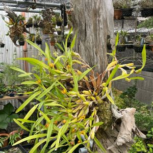 去年の5月に流木に付けた マキシラリア バリアビリス ちゃんと着生したんやろうか けっこう花咲いてる🌱 なかなかのサイズになってきた🌿