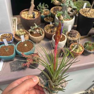 またチランジア。🌱 マグヌシアーナの先がなんか変やなぁ〜って思って 近づいたら花芽が出てきてた🫢
