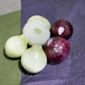 玉葱 紫玉葱 ご近所の畑の方に頂きました 最後は双子ちゃん この子は先に息子宅頂いた物のお裾分けです ほかに非常に大きい物は中をくりぬきハンバーグだねを詰めスープ煮にして頂きました