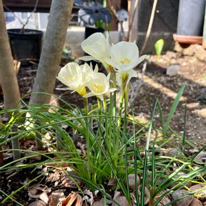 ペチコート水仙の 優しいクリーム色 アオダモの木の下で咲きました♡ ①②④アオダモの木の下の 右側の株3月中旬に咲き始め 4月迄楽しませてくれました♪ ③右側のペチコートは12月に 芽を出し🌱去年のうちに咲き ました♪色も白です🤍✨ 咲く時期が3ヶ月も違うなんて 面白い♪楽しませてもらいました♡