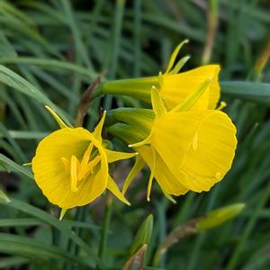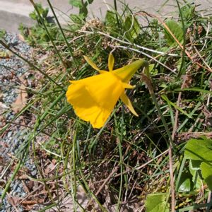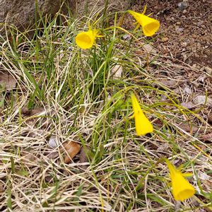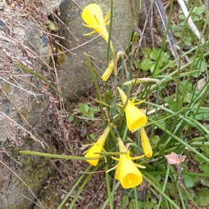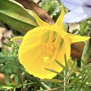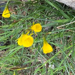 ラッパ🎺みたいな、ペチコートスイセンが咲く。しかも庭の3箇所に。 多分一度も植えてない🤨 鳥達が運んできたんだろうか。 スカシユリも同じ。ただの忘却かそれとも天のお恵みか😆 #ootakanomori_garden