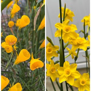 今日は暖かい☀️ 紙風船の様なペチコートスイセンが開花しました💛 バニーテールの穂があちらこちらから🐇 お水やりしたら水玉に𓂃◌𓈒𓐍