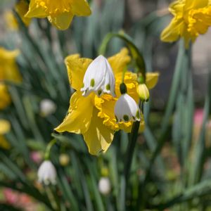 今日のお花は春一番そらともナチュラルガーデンで咲く花です ①②スノーフレークと水仙③水仙とそら④丹頂草⑤ペチコート水仙