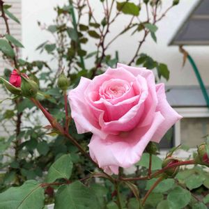 こんにちは😃🌹〜 今日は良いお天気です🙆🆗 我が家のウェルカムスペースのピンク🩷🌹が咲き始めています。 今年は🌹の種を採取しようと思います。 沢山取れるといいなぁ〜