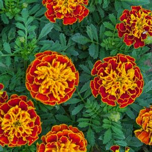 少し変わったマリーゴールド フランス種らしい 二色咲きや深紅色があり 真ん中と周りとは花びらの大きさ(種類)も違うそうです✨