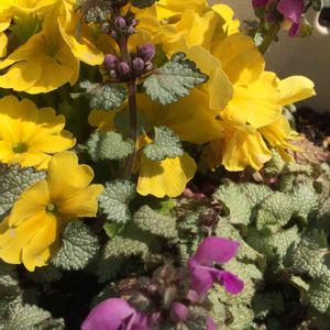 ラミウムのお花が咲きました🌸 生育旺盛でプリムラさんが苦しそうなので、タイミングみて植え替えをしなければ🍀