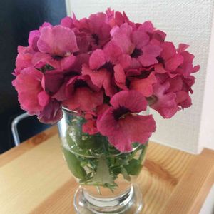 ヒューケラファイヤーチーフさんのお花が折れてしまった💦のでビオラさんと花瓶に🌸 ヒューケラのお花ってなんて可愛らしいんだろう…💕