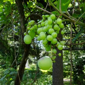 これ、何だか分かりますか?ブドウ🍇だけど、ただのブドウではありません。メンデルの法則が発見されたメンデルのブドウの子孫です。今年の猛暑がお好みなのか、大豊作でたわわとなっています。