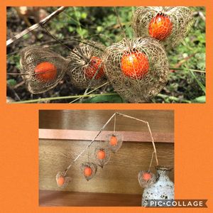 ツルウメモドキのリースとほおずきをハロウィン風にアレンジしてみました^ ^
