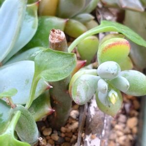 見た目が変わってしまった多肉さん(^-^;💦 ペンデンスってこんな見た目でしたか( •᷄ὤ•᷅)? 白いお粉を纏っていたと思います🥹 昨年夏に瀕死の状態になり復活して来ました。 ただ、復活後最初からお粉を纏っていませんでした😢 頭からお水をかけた訳ではありません(;:´°;Д;°`:;) これからお粉を纏うのかな🤔