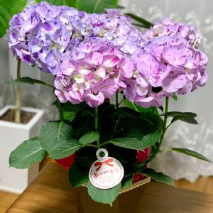 娘より母の日の🎁💕が届きました。 紫陽花 舞姫 パープル です♥ ブルーは以前頂いて地植えにしましたが 今回はこのお色を指定しちゃいました⸌◦̈⃝⸍ ピンクからパープルに変化してるグラデーション、絞りが本当に素敵です⑅︎◡̈︎*