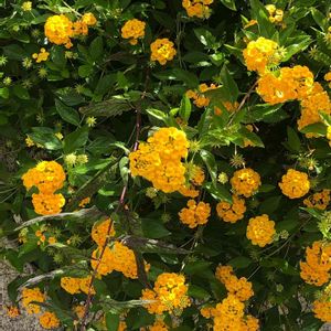キバナランタナの花が綺麗に咲いています💛 生け垣に、黄色いキバナランタナの花が綺麗です💛
