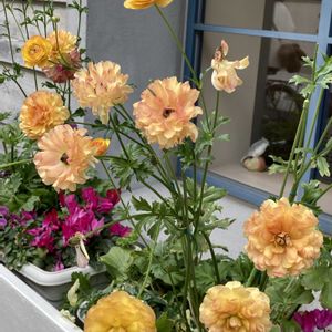 出窓のある美容室の花壇の花たちです。 🏷️スライドショー♪