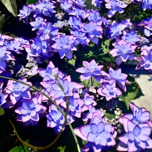 紫陽花はやはり雨がよく似合う… (*˘︶˘*).。*✨🌱 晴れた日よりも…しっとりした空気の中の方が元気なようだ😊 このコは、小さめの八重咲きの花がとても可愛らしいルナちゃん💖 青色で咲かせたかったのだが…紫で咲いている でもまあ、5房程が咲いてくれたのでそれだけで十分🎶🐦Happyだ🤭 実は紫陽花は園芸上級者向けではないかと私は思っている😅 紫陽花は水が好き…と言われるが…鉢での管理はなかなかに難しい 水切れと根腐れの合間を狙う難しさ 2年目以降を咲かせるにも…剪定時期と箇所を守っていても、水や肥料の管理が悪ければ咲かない😑 去年同じようにしたのに、今年花を咲かせた株は三分の一種類だろうか… 薔薇よりも紫陽花の方が難しい。薔薇は✂切れば二番花三番花が咲くが…紫陽花は冬の寒さで花芽が作られるためシーズン一度きり しかも気に入った色で咲かせるpH調整も関わる… やはり上級者向けの植物なのかもしれない… それでも沼にどっぷりだ🤣🤣🤣🌱