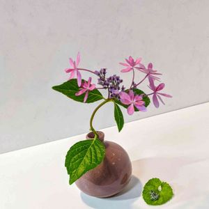 お庭のダンスパーティー💓 大きなダンスパーティーの陰に茎の細い華奢なこの子が咲いていました。 可愛かったので生けてみました💓 梅雨の時期にはアマガエルがケロケロ🐸 睡蓮の葉に見たてたパルマスミレの葉に筑波山のお土産の🐸を乗せてみました💚 見えますか〜?😄😆 アジサイ ダンスパーティー アジサイ科 アジサイ属