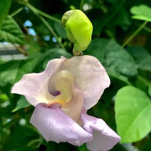 真夏の青いスイトピーが咲いてます🌸 別名、スネールフラワー 蕾がカタツムリに似てるからだそうです😀 花がポツポツしか咲かないので、中々いい写真が撮れなくて😅 ノウゼンカズラというのアーチに一緒に絡めてます。 もっと沢山、咲いてくれるのかなぁー⁉️