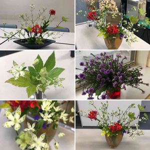 いけばなのお稽古の残り花を、会社に飾ってみました。1人花展状態。 ミニの作品から、ニコライバーグマン風のものまで色々。楽しい。