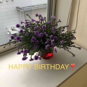 知り合いのお誕生日に生けたお花の写真にメッセージを書いて送りました。 アスターをたくさんもらったので、ブーケの練習を兼ねて、ニコライバーグマン風に。スパイラル、まだまだ練習が必要です。もう少しこんもりドーム型になればいいんだけど、どうしても生け花風になってしまいます。