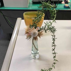 ドライフラワーを作ってたみたので、上から写りこませてみました。