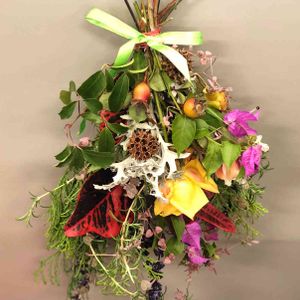 スワッグ試作してみました。 会社で調達したあり合わせの花材を束ねただけ。