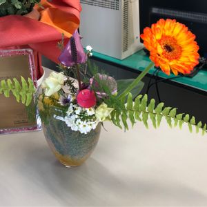 受付の花 きれいなガーベラとアンスリウムが手に入ったので受付に。