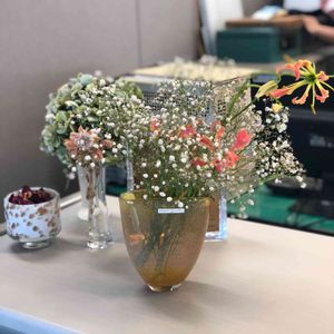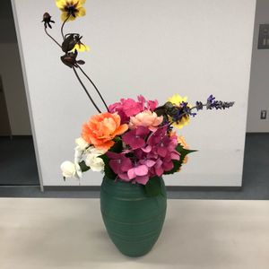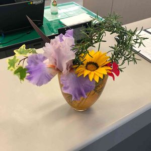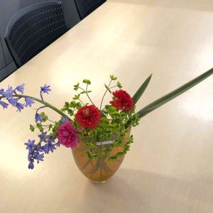 久しぶりに受付にお花を飾る。 撮影の為、テーブルに移動。