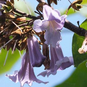おはようございます😊 今日のお花キリ🌿💜🌿 ゴマノハグサ科キリ属 中国中部原産の落葉高木🌳 日本で最も軽い木材として 知られ家具や楽器などに🎻 家紋や皇室の紋章にも 使われ高貴なイメージ✨ ①初夏に薄紫紫の花が💜🤍💜 ②枝先の大きな円錐花序は直立し淡紫色の花が多数💜🤍💜 ③古くから各地で栽培され 野生化している物も🌳 高さ8〜15m直径30〜50cmと大きくなり成長も早いです🌳 ④こちらは桐の実🤎 ⑤この可愛い子は葉痕🤎 真ん中のハートが可愛い🤎 🏷️青空に映える 🏷️青い花で夏祭り2025 🏷️可憐な火曜日 ①②香川県レオマワールドで🏞️2025.5.17 ③生田緑地て🏞️2022.5.17 ④⑤いつもの散歩道で🌅2024.2.17