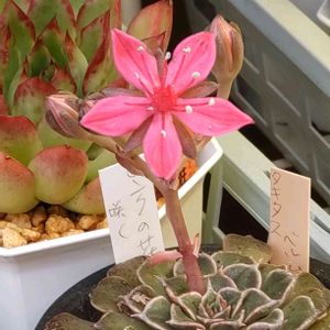 普段とっても地味多肉 唯一お花見る為に育てる多肉 pic2 プランターINで手間いらず😚