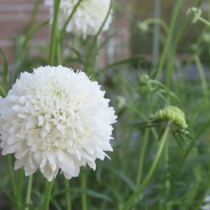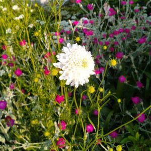 こんにちは☀ スカビオサ スノーメイデン🤍 群生リクニスの中で咲きました🥰
