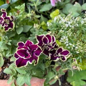 ペチュニア どんどん増えちゃってます!葉物は古株さん。そちらに土を足して植え込みました😆