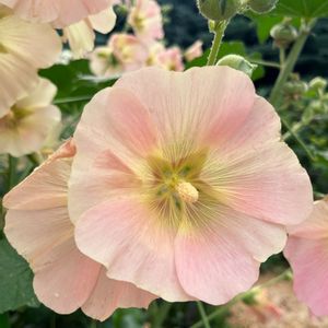 2023.7.16 ROYCE' ROSE GARDEN あいの里 いつもの濃いピンク、薄いピンク、白、黄色とも違う色のタチアオイ。 はじめて見た色でした。