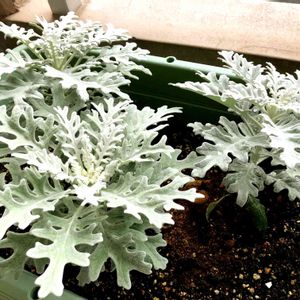 2投稿目は シロタエギク ダスティミラー ん?花が咲きそう? 確か夏にも咲いたのに、花期はいつなんだろ😅 白い葉っぱに黄色のお花💛 冬の方がしっくりくるけどね😆 今日は午後から親子レクの参観日 体育館でドッジボール…大丈夫かしら💦 足がもつれて転びそう😂