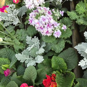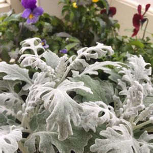 シロタエギク🎶 ダスティミラー🎶 本当にホコリがかかってるみたい😃 1ポット50円😁 ビオラは1ポット30円😆 我が家の風除室を華やかにしてくれています🥰