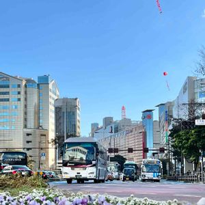 福岡市・天神の初売りで、久しぶりのアドバルーン♪ 随所に花壇のあるまち。