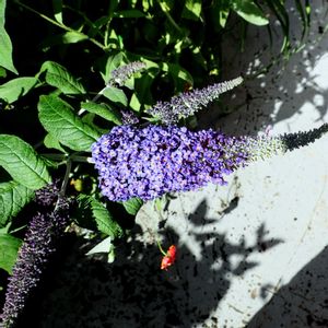 (PW)ブッドレア・パグスターのアメジスト 別名 フサフジウツギ、バタフライブッシュ(蝶が集まるということで) 丈は30cm 花の部分は15cm 最終的には樹高60cm、樹幅60cmになるそうです。 新枝咲きで秋まで繰り返し咲くそう😚 ほんのり良い香り、パッと思ったのがヒヤシンスの香り🪻 色は他にブルー、ピンク、ホワイトも販売されてました。 ベビー苗で先月の6月中旬に届いて今月開花しました😊(来年まで待つのかなと思ってました♪) 届いて1週間で下の葉が黄色くなっていき、ストレスかと思ってましたが原因は葉ダニ(多分)で2週間位かけて退治しました💦 いずれは地植えしたいのですが、西日に耐えてくれるかな。。。 ③7月20日のつぼみ