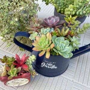 ボロボロになった寄せ植えの仕立て直しや植替え 葉挿しっこも使ったりして、これで鉢が減るハズ♪と思ってたけど、全然減った気がしません😅 「鉢減らし」のイントネーションで「鉢減らない」と呟きながらチマチマ寄植え。 楽しいから、まぁ いっか😅