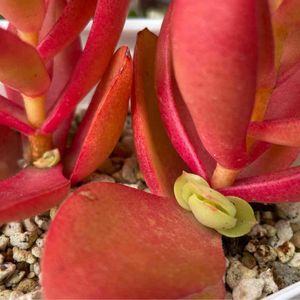 今日は風が強いです。 多肉棚が揺れててドキドキします💦 冷たい風に耐えられず、花柄摘んでそそくさとお庭から退散してきました。 火祭り 真っ赤に染まってます🍁 株元の子株ちゃんはみどりん😊 不織布を掛けに また庭に出ないといけないけど、一度体を温めてからにしようと思います☕️ 本音は外に出たくない😜
