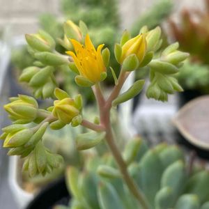 天狗の舞 我が家に来て3年、初めて花が咲きました😊 最初は2本だったけど、今では3鉢もあります! 寄植えの中にもいるかな。 丈夫でよく増えるコです😊