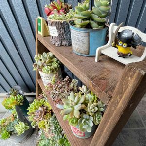 北側軒下に寄せ植えを寄せ集めました。 玄関ポーチになるのですが、北側なので普段植物は置いてません。 でもこの夏は日差しから逃れるため、寄せ植え等を一部移動させました。 子供と一緒に家にあった小物も飾ると、寂しかった玄関前が賑やかに♪ 家族にひっくり返されないかが少々心配ですが、期間限定の多肉ちゃんが迎えてくれる生活を楽しみたいと思います😊
