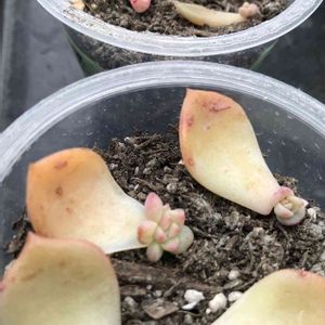 白牡丹の葉挿し、順調に育ってきました😄 奥はだるま秋麗、ひめ秋麗、ピンクルルビーとリトルビューティー、、だったハズ! プリンカップで育ててます。 GSで製氷皿に育ててる方を何度か見かけて、次はマネさせてもらおうと思ってます😊