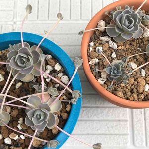ルビーネックレス2種。 2種? どちらもオマケ苗で名前がない状況で頂きました。 わーい、ルビネだ♪と思って一緒に植え付けたけど、どう見ても種類が違う。 しかも最近、ルビネによく似た紫麗玉(シレイギョク)なるものがあることも知り、益々分かりません。 もう少し成長したらまた変わってくるかな? 最終的に、かわいいからなんでもいいや☺️に落ち着くのは多肉あるあるだと思ってます😄
