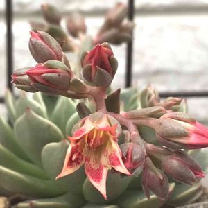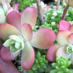 冬に作った寄植えです。 みんな成長して生き生きしてる感じ😊 だるま秋麗の花芽もぐーんと伸びて、火祭りは少しずつ紅葉が戻ってきてます。 白くて丸いだるま秋麗と赤く尖った火祭りの組み合わせ、好きだなー😊 ハムシーの葉先の赤も手伝って、だるま秋麗がより可愛く感じる寄植えです。 紅葉、もう少し頑張ってー❗️