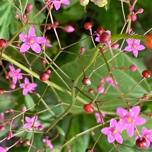 🌿 シクラメン 🌿 ❉プティ・ムーラン❉ 八重な感じで可憐なお花です🩷 2️⃣ガーデンシクラメン ❉ ゴブレット ❉ 3️⃣五色トウガラシ まだまだ綺麗な実をつけています。 パープルフラッシュの実から育てましたが、葉っぱは普通の緑色…斑入りの葉っぱにはならなかったです😔 4️⃣オキザリス トリアングラリス 5️⃣ハゼラン…赤い実が可愛い💕
