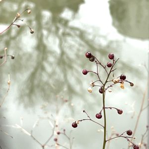 赤い果実が 細かく枝分かれした茎にモビール状に配置され目を引きます ハゼラン(ハゼラン科〃属) 果実は熟すと黒っぽくなり 弾けて砂のように細かい黒い種が飛び出すそうです そのため爆蘭(ハゼラン)と呼ばれたそうです ②③葉はしっかり厚みがありみずみずしい 上部には葉はつきません みつけたのは お茶席を配する 少し荒れた茶庭 ハゼランは明治時代に観賞用に導入され現在は多くが野生化しているといいます この茶庭には観賞用に植えられたとも あるいは野生化した雑草とも思える様子でしたが いずれにしても風流でいい味わいを感じました